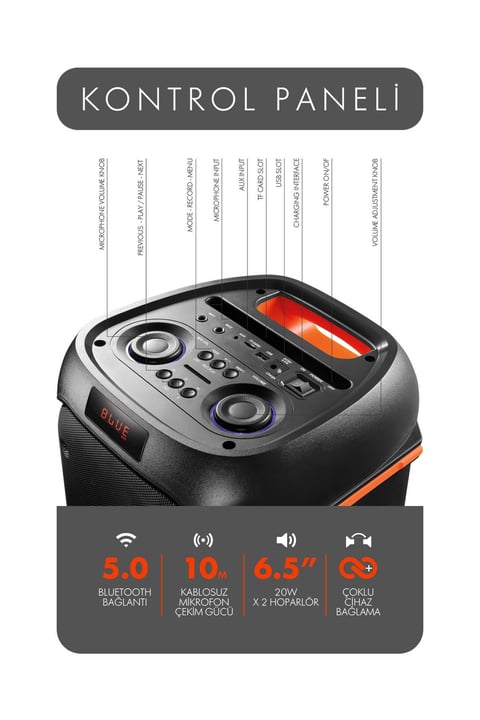 ✨ Çift hoparlör + mikrofon + LED + TWS + kayıt özelliği = tam bir parti makinesi!