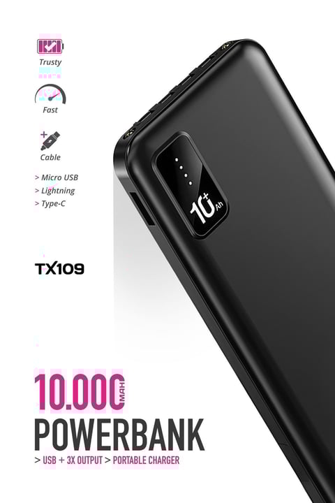 (Powerway TX109) 10.000 Mah. Siyah