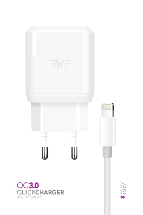 Powerway QCL30 Iphone 18W Hızlı Şarj Lightning Şarj Cihazı (Kablo Dahil)