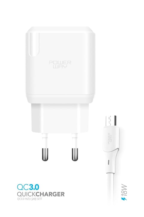 Powerway QCM30 Micro Usb Girişli 3A 18W Hızlı Şarj Seti Orijinal